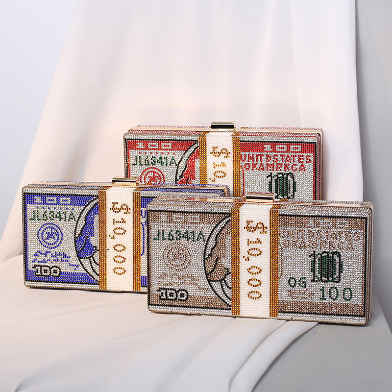Dinner Rhinestone Dollar Pink Clutch Banquet Evening Bags