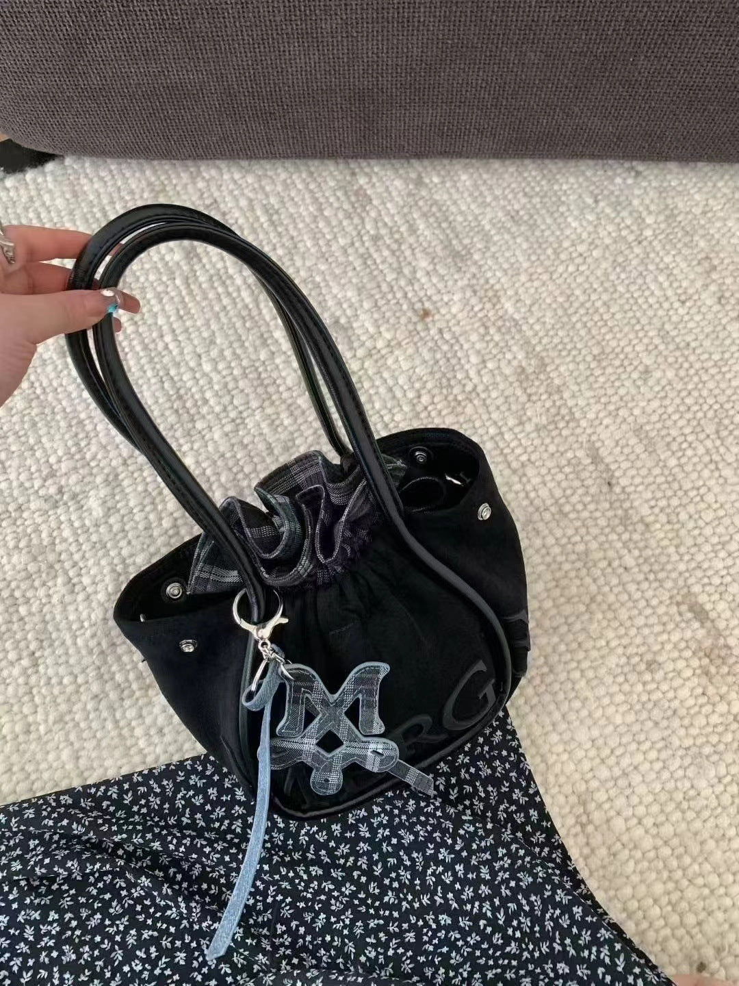 Medium Large Capacity Totes Deerskin Veet Shoulder Bags