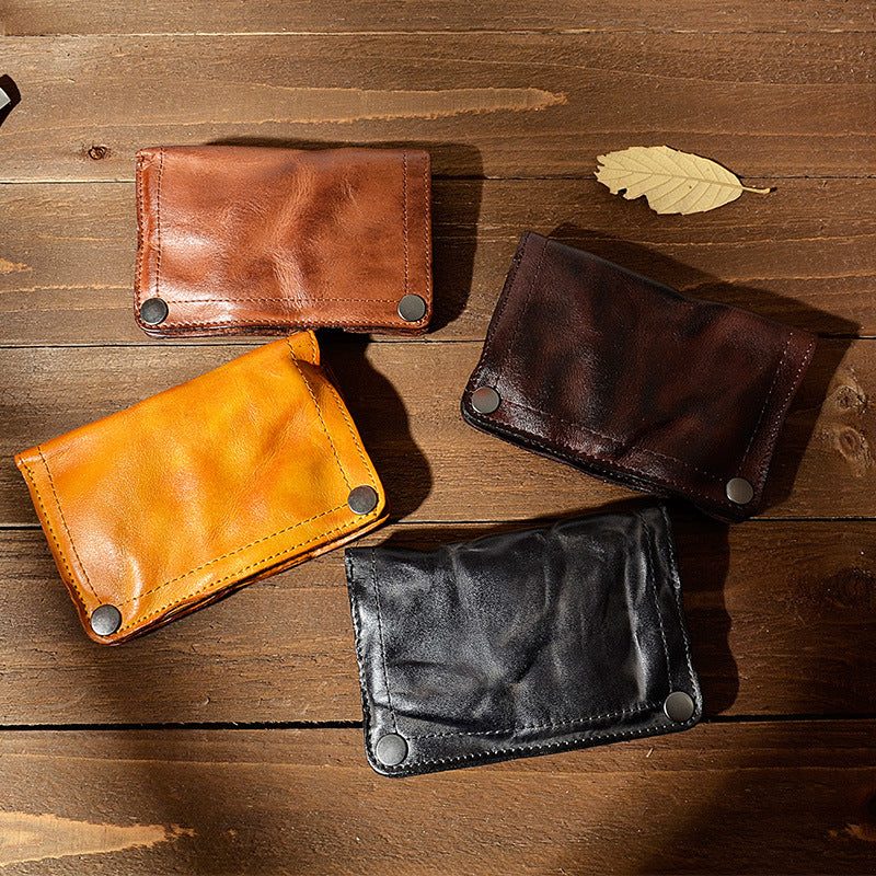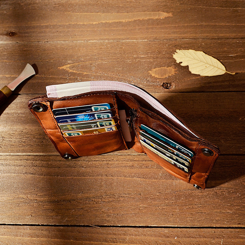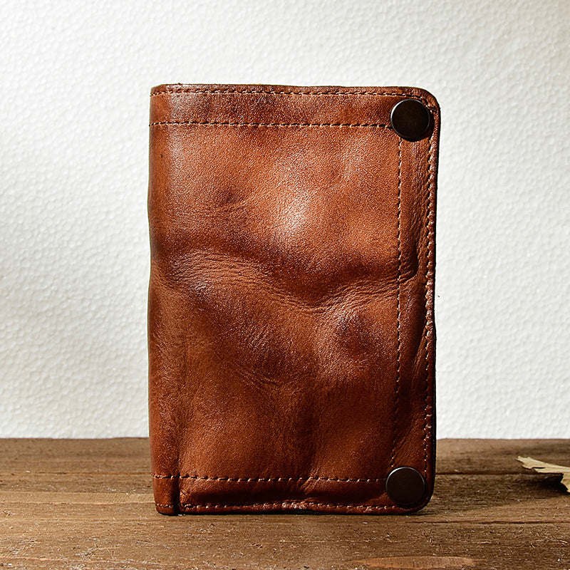 Men's Pleated Vegetable Tanning Leather Retro Large Men's Wallets