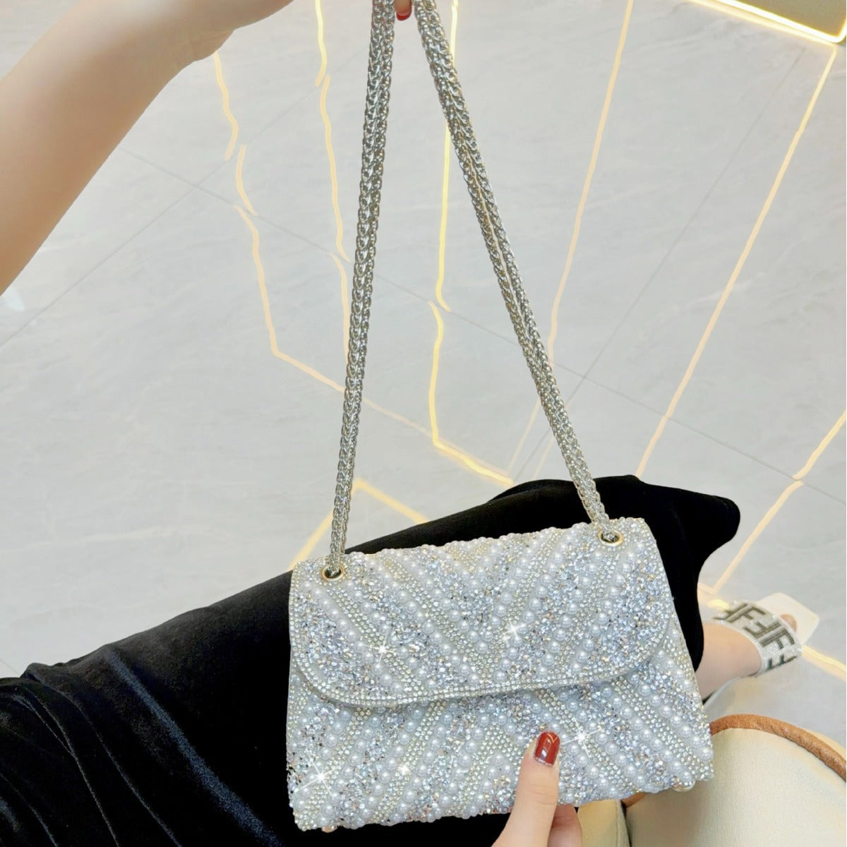 Women's Banquet Diamond Pearl Cheongsam Underarm Dinner Evening Bags