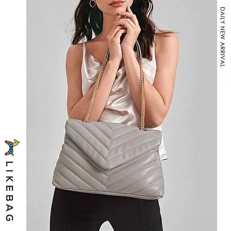 Women's Chain Embroidered Lady Joker V-shaped Diamond Shoulder Bags