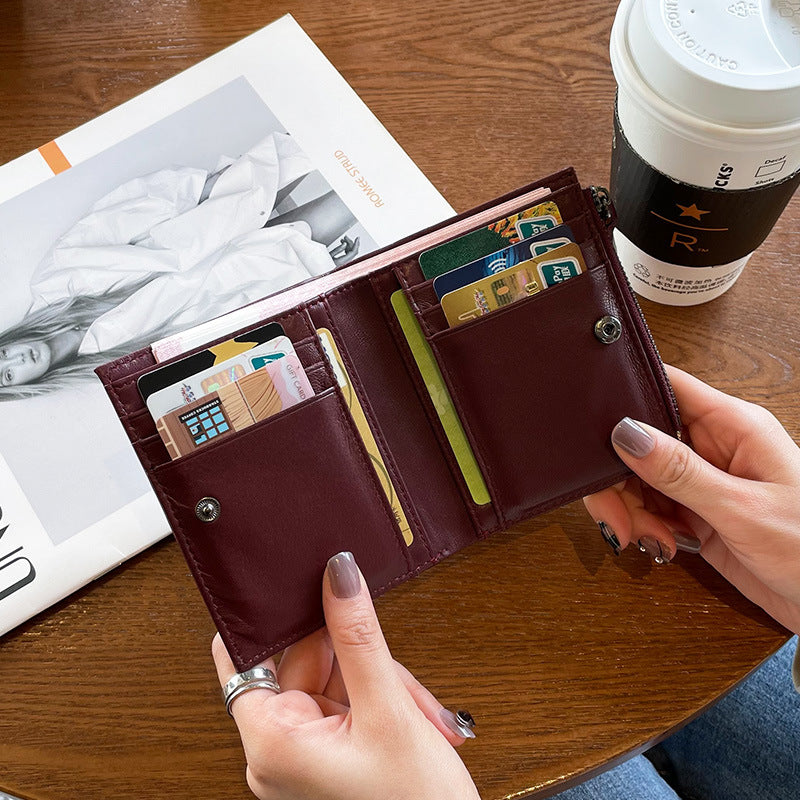 Women's Classy Short Leather Woven Sheepskin Card Holder
