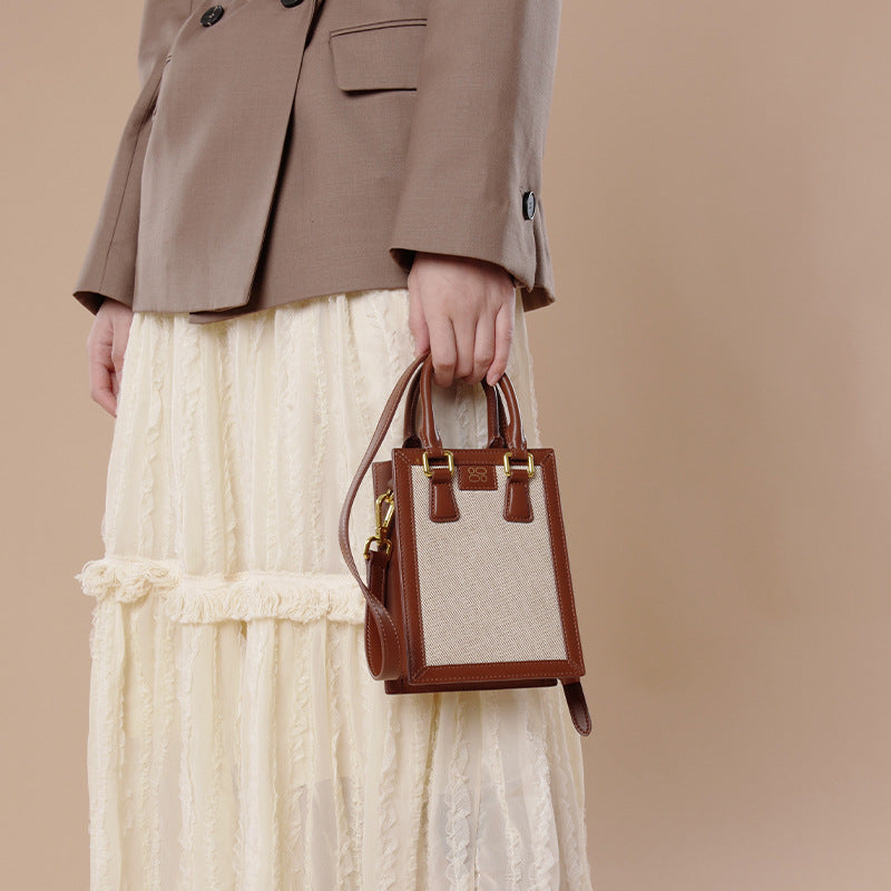 Women's Commuter High-grade Mobile Genuine Leather Canvas Crossbody Bags
