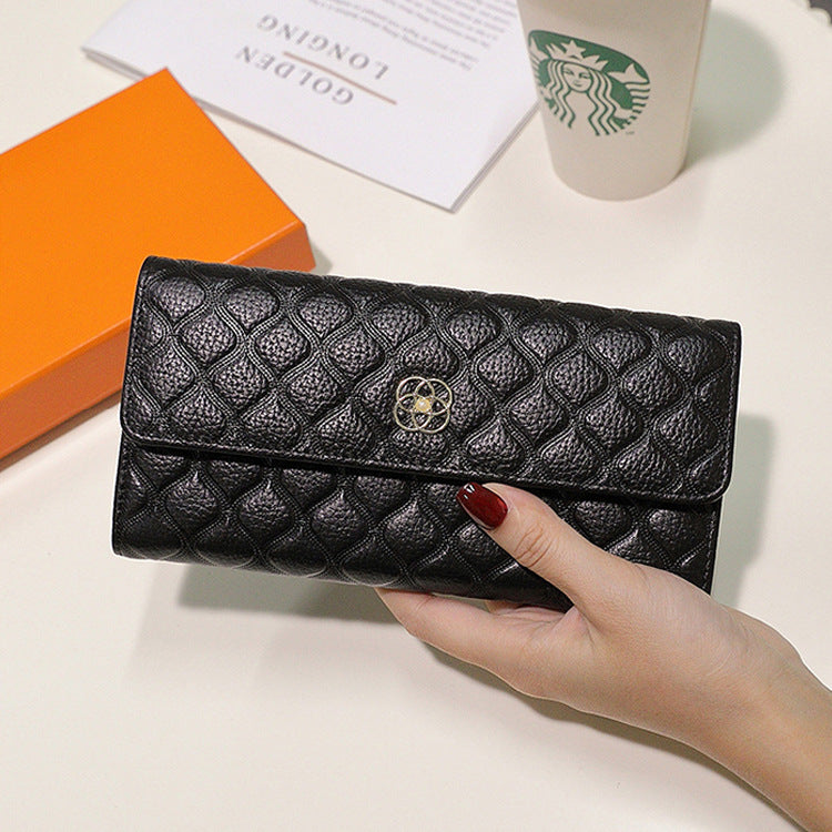 Women's First Layer Cowhide Mid-length Fashion Rhombus Ladies Wallets