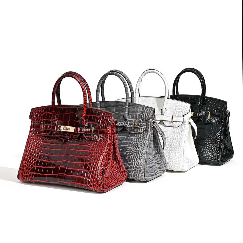 Women's High-grade Crocodile Pattern Cowhide Large Handbags