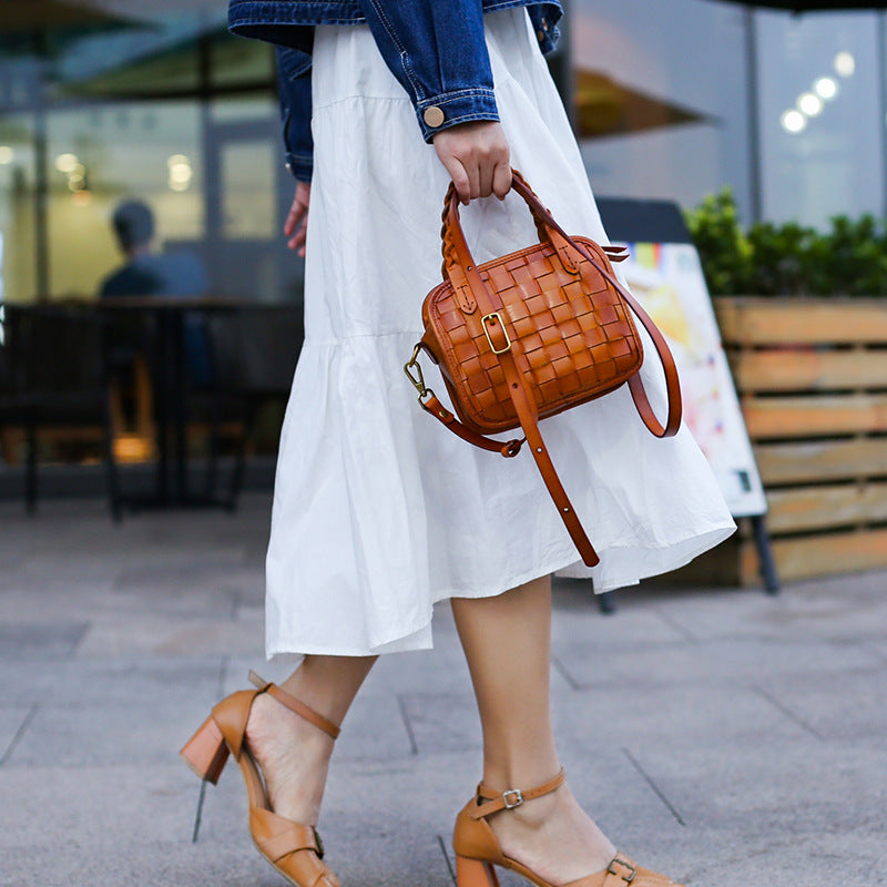 Women's Layer Vegetable Tanning Leather Hand-woven Genuine Bags