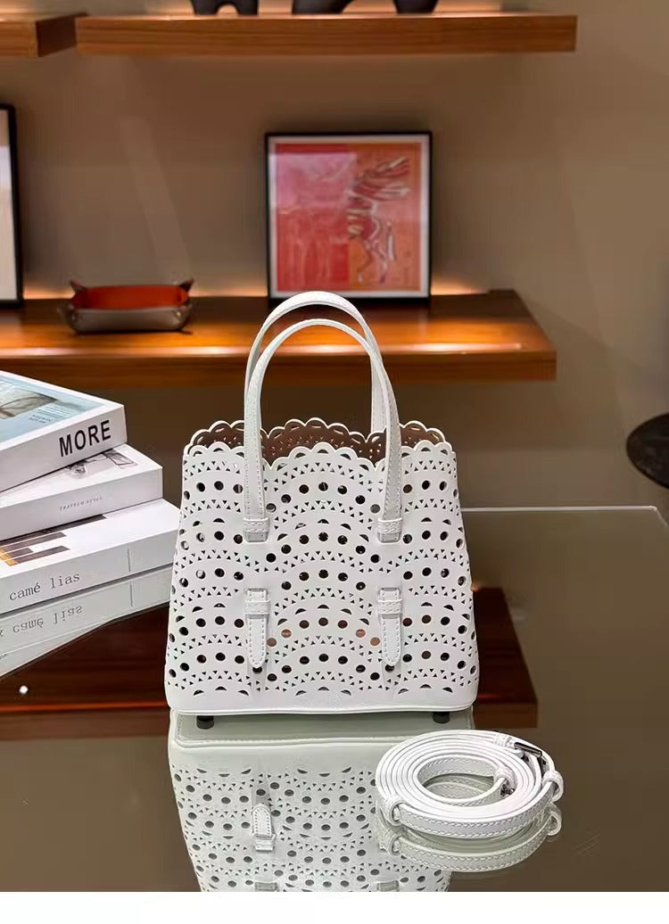 Women's Niche Wave Hollow Carved Cowhide Vegetable Crossbody Bags
