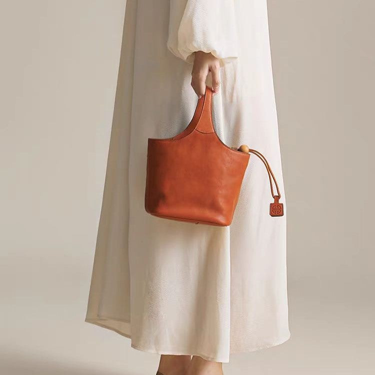 Women's Vegetable Tanning Leather Genuine Flower Basket Handbags