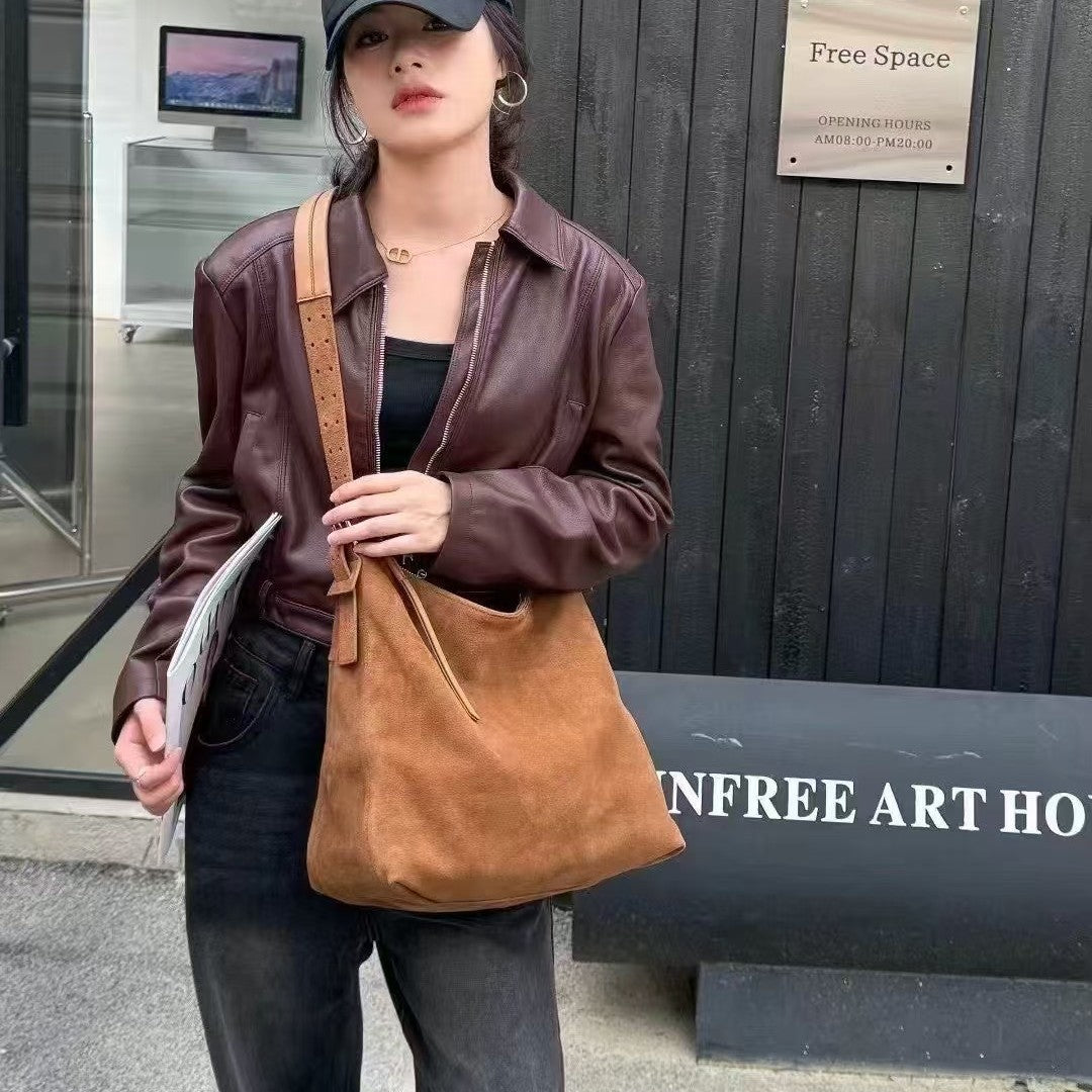 Women's White Suede Large Capacity Commuter Bags